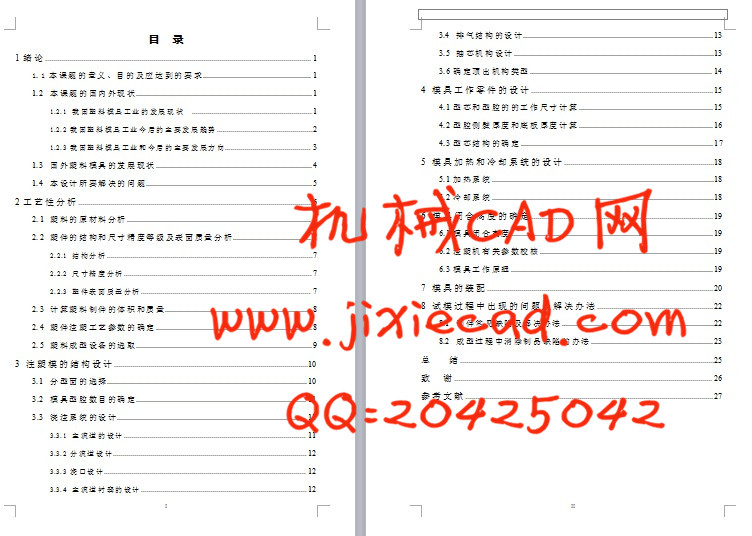 Abstract: I study the specialty is the mold design and manufacturing specialty, the graduation design is the bottle injection molding process and the mould design.The design of the design combined with the university three years of professional knowledge and CAD software, a set of plastic mold.