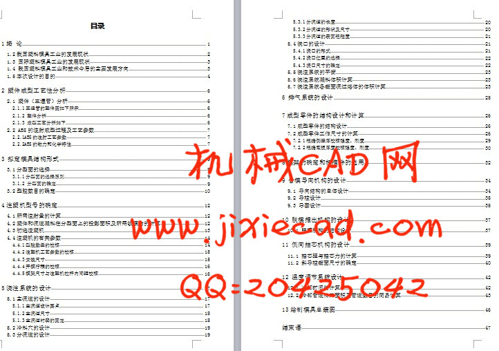 本设计题目为三通管注塑模设计,体现了管类塑料零件的设计要求、内容及方向,有一定的设计意义。通过对该零件模具的设计,进一步加强了设计者注塑模设计的基础知识,为设计更复杂的注塑模具做好了铺垫和吸取了更深刻的经验。